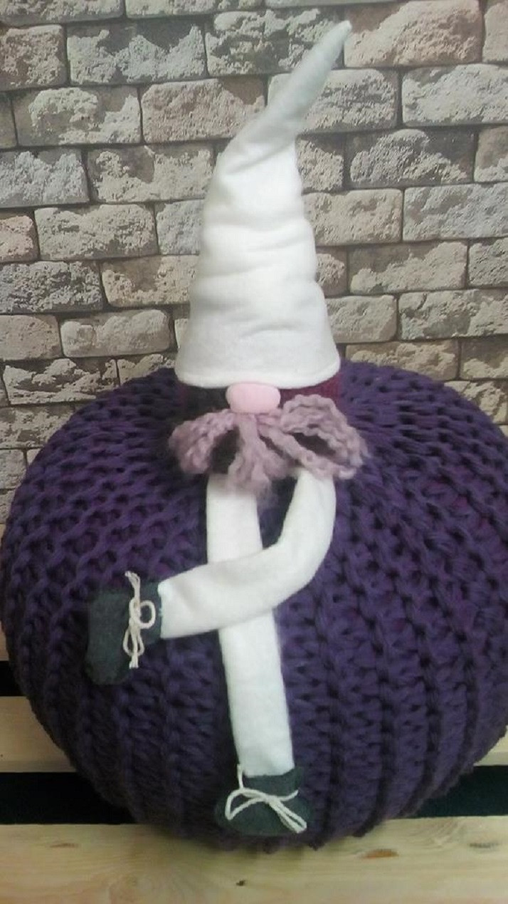 Bílý skřítek má háčkovené tělíčko s ručně šitými doplňky, dno vyplněné slupkou pohanky zbytek duté vlákno. Výška skřítka cca 20cm.
