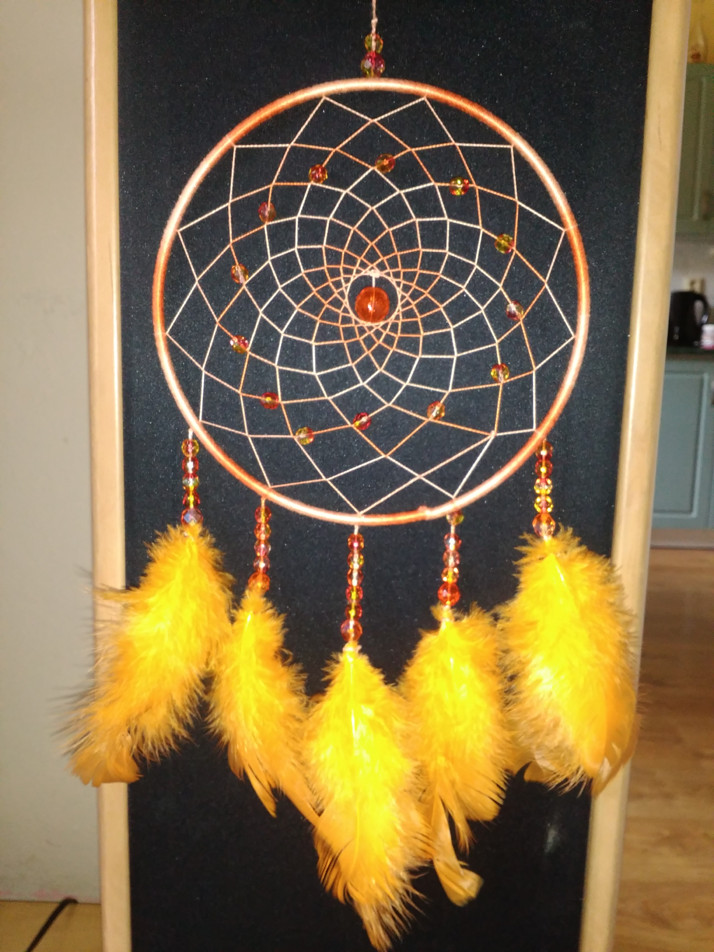 Na ukázku, také mnou vytvořený lapač snů na zakázku, již prodaný, ale ráda Vám vytvořím stejný -:)
