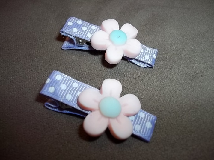 ručně zdobené sponky na vlásky,typ krokodýlek se zoubky,potažené barevnými rypsovými nebo lesklými stuhami a ozdobeno aplikací