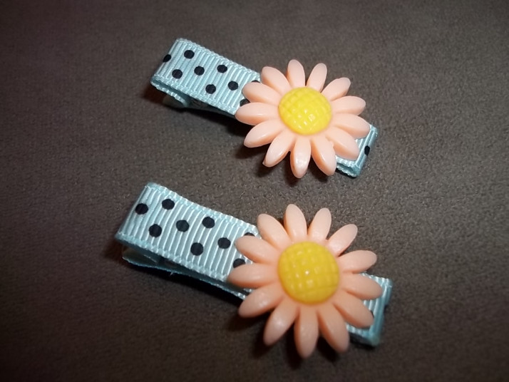 ručně zdobené sponky na vlásky,typ krokodýlek se zoubky,potažené barevnými rypsovými nebo lesklými stuhami a ozdobeno aplikací.Cena za 1 kus 25 kč.Poštovné a balné 50 kč doporučeně,obyčejně 20 kč