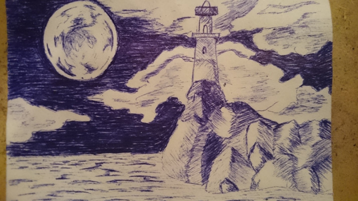 Obrázek vznikl z dlouhé chvíle v práci, kdy jediným osvobozením v práci byla propiska a čtvereček papíru na poznámky (5. červenec 2016)