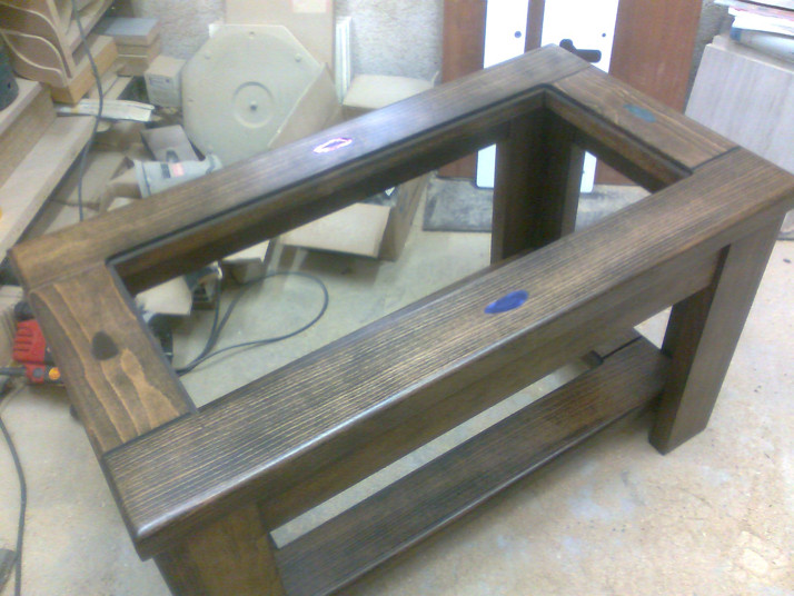 Patrový konferenční stolek - bukové dřevo, olej s voskem-odstín tmavý ořech, sklo Satinato, leštěné probarvené plátky Achátu(kámen)