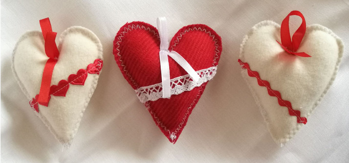 Srdiečka sú vyhotovené z vlny, vyplnené dutým vláknom.