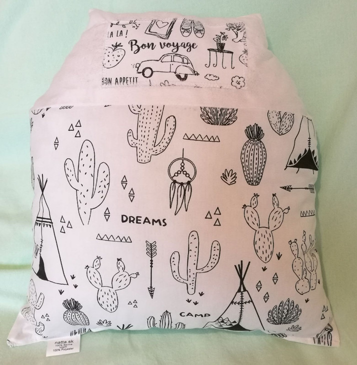 Vankúš je vyhotovený zo 100% bavlny vyplnený dutým vláknom,možno ho prať v automatickej práčke, sušiť voľne položený.