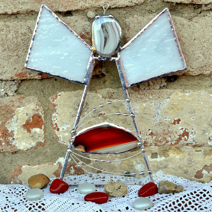 Bílý anděl s achátem