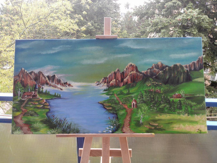 Malba velikosti 100x50. Tvořená na zakázku podle přání majitele