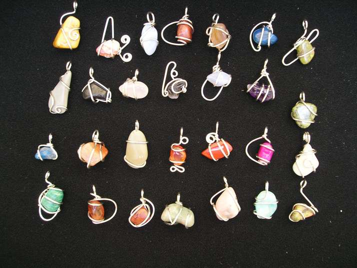 Jednoduché postříbřené závěsy s polodrahokamem.