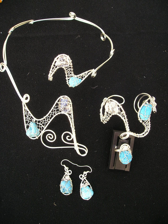 Postříbřený komplet zdobený velkým tyrtysem a křišťálem