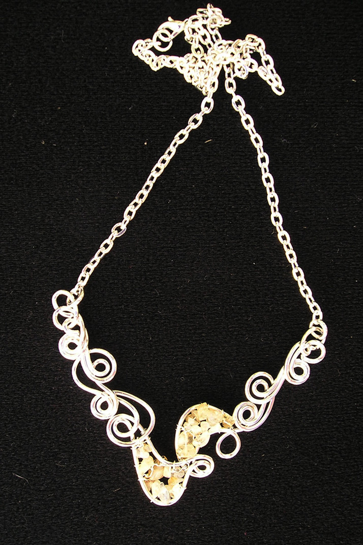 Postříbřený pletený náhrdelník zdobený drobnými citríny. Neobsahuje nikl, povrch ošetřen proti černání.
