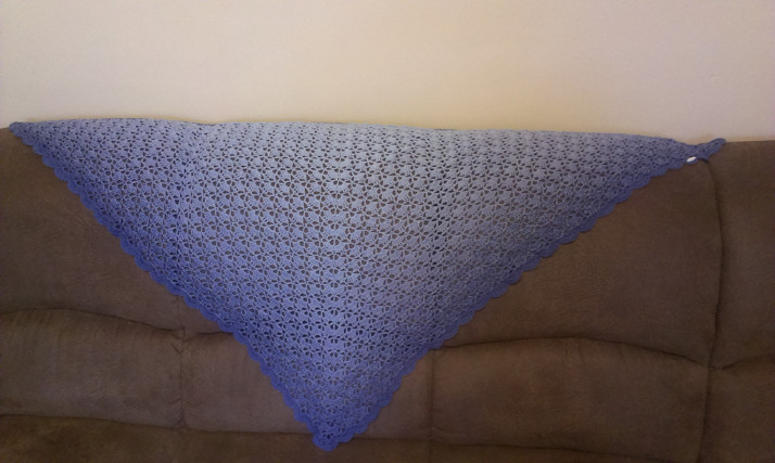 Ručně háčkovaný šátek z duhového klubíčka 50% akryl ,50% bavlna ,příjemný materiál . Velikost nejdelší strany 150 cm.Barevné části se střídají dle návinu v klubíčku.