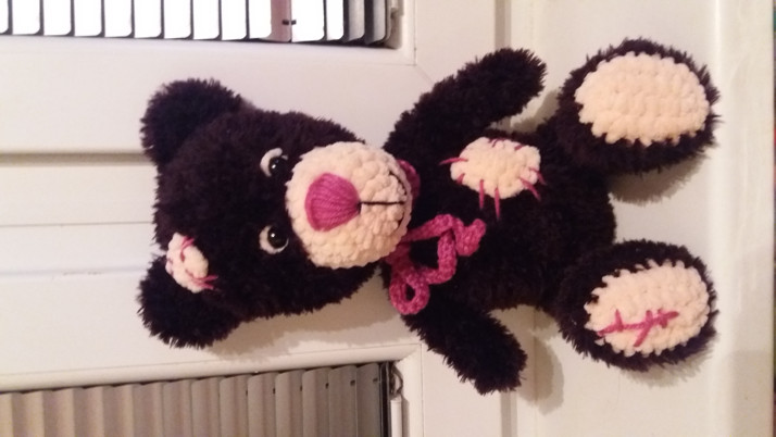 Medvídek je háčkovaný z příze Mink (polyamide) a vyplněný dutým vláknem .Obsahuje bezpečnostní oči a nos .Je vysoký cca 35 cm .Doporučuji praní na šetrný program na 30 stupnů .Medvídek je vhodný pro děti od 3 let.