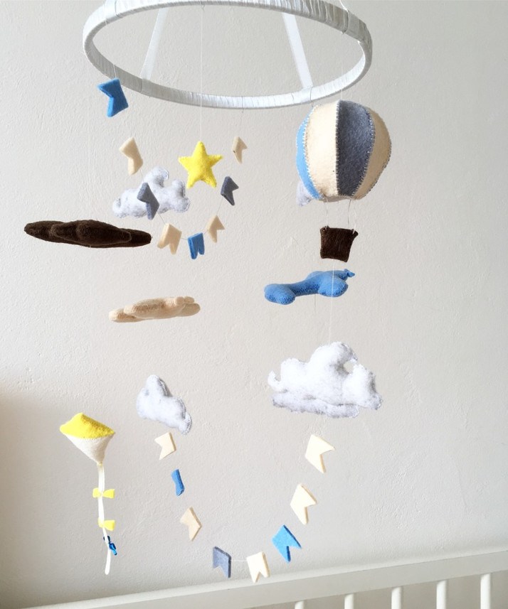 Nadýchaný kolotoč s létajícím balónem, drakem a třemi letadly přidá objevitelskou atmosféru do dětského pokoje a určitě se stane předmětem zajmu vašeho dítěte