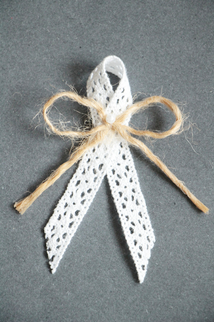 Vývazek není lepený, ale ručně šitý průhlednou silikonovou nití.