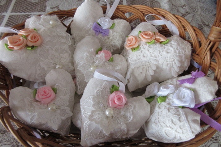 Šité srdíčko velikost 12 cm 70 Kč, 10 cm 50 Kč, 8 cm 40 Kč.
