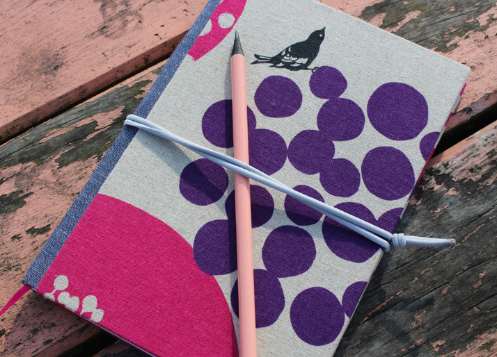 Trocha romantiky - zápisník, desky potažené plátnem zn. Echino s romantickým potiskem, kontrastní hřbet (z modrého závěsu ze second handu), gumička na stažení...