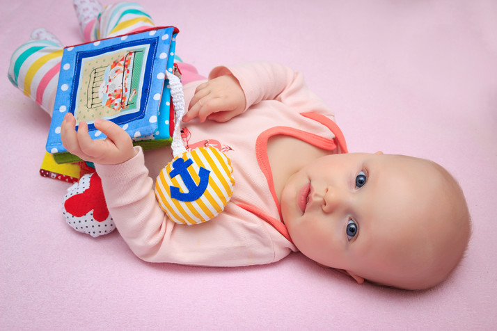 čistá bavlna, kombinace patchwork,bavlněná příze a plastové prvky - interaktivní knížka pro kojence a batolata