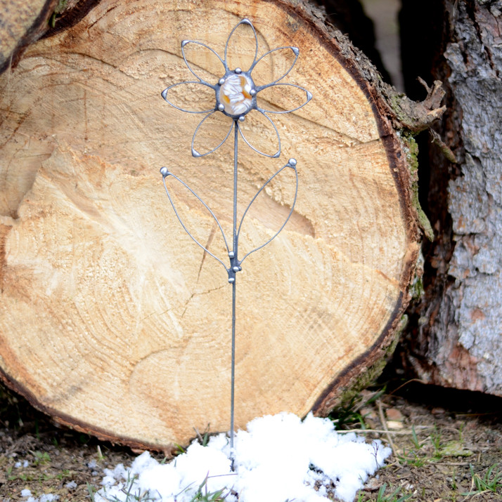 Drátěná kytička zápich- světlá
