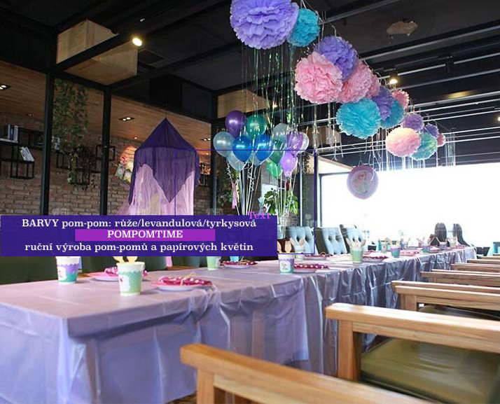 POMPOMY v barvách levandulová, tyrkysová, růže