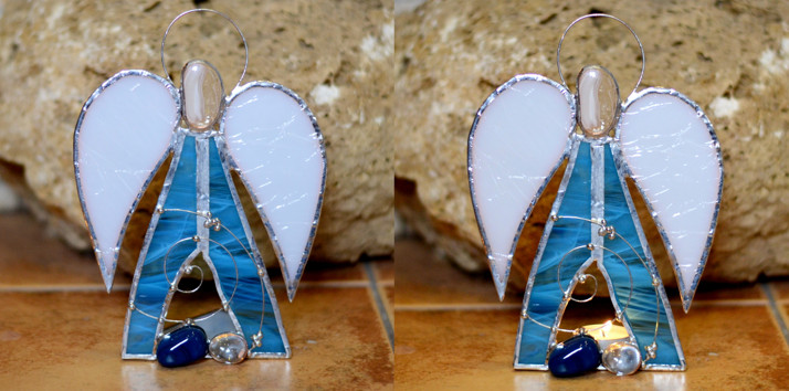Modrý andělíček svícen s modrým achátem a křišťálem