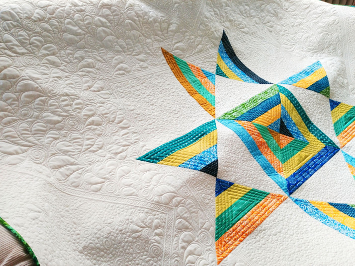 QUILT O VELIKOSTI 210X210 CM. BOHATĚ QUILTOVANÝ TECHNIKOU FREE-MOTION QUILTING