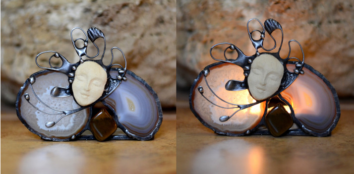 Svícen z plátků achátu s karneolem