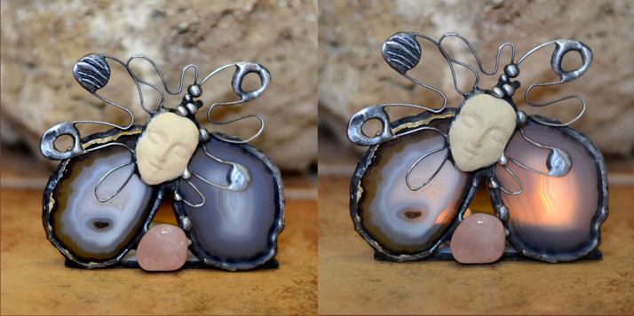 Svícen z plátků achátu s růženínem