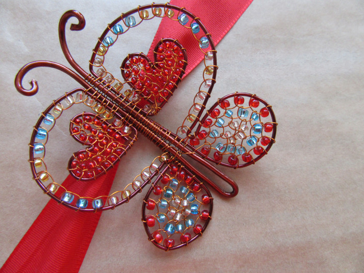 Z měděných drátů, rokailu, tvořen s láskou na dárek.