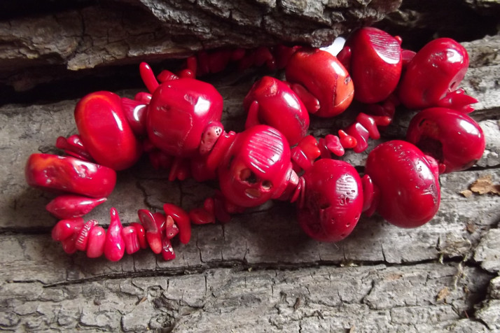 Náhrdelník je dlouhý 50 cm s ocelovou karabinkou.Největší korál je 20x10 mm.Korál červený,spolu srůžovým symbolizuje lásku,oddanost,pokoru a soucit s trpícími.Každá budoucí matka by z něj měla nosit na krku korále.Fyzicky chrání zdravý růst plodu v matčině těle.Jejich rudá vibrace lásky bude dítěti vlastní i po narození a v celém jeho dalším životě.