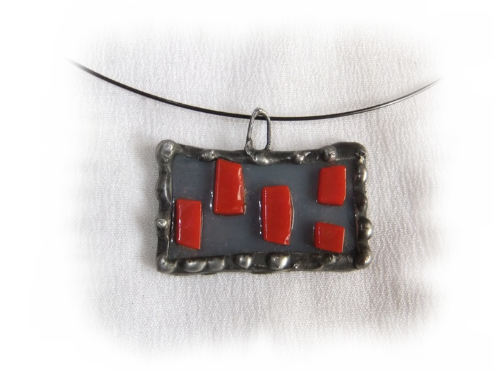 Přívěsek-fusing-tiffany ze šedého a červeného skla
