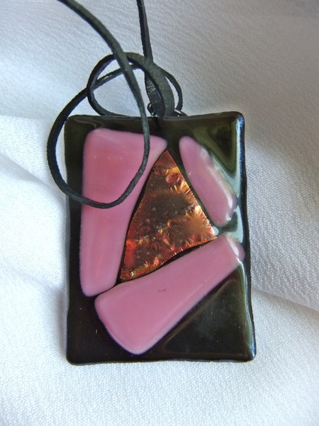 Přívěsek vtvořený fusingem z opálovch a dichroickch skel