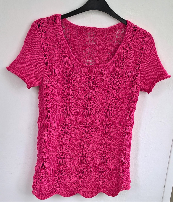 Růžový svetr ze stužkové příze