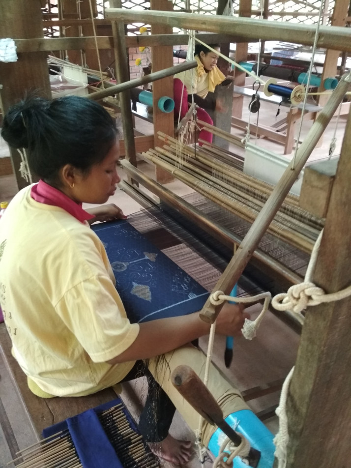 Obdivovala jsem zručnost místních žen. Zaškolení pracovnice pro tkaní jednoduššího vzoru na mechanickém stavu trvá minimálně 6 měsíců. Složité vzory, jako je tento, tkají tkadleny s mnohaletou praxí.
