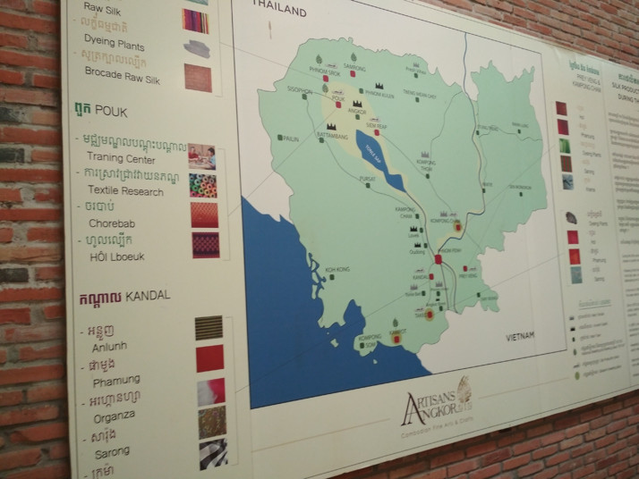 Mapa center výroby a výzkumu hedvábí v Kambodži.