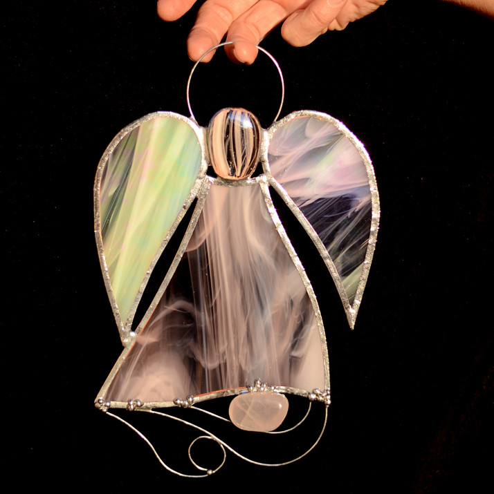Růžový andělíček s drátkem a růženínem vyráběný tiffany technikou :)