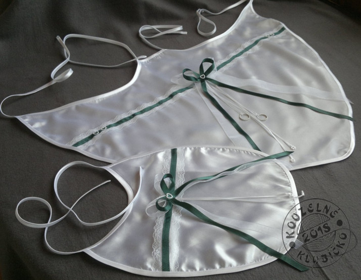 Na přání ušité bryndáky pro novomanžele a pro družičku - s tmavě zelenými stuhami.
