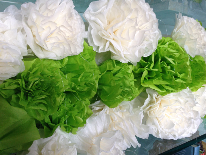 Citrusově zelené pompom a pompomky v barvě slonové kosti