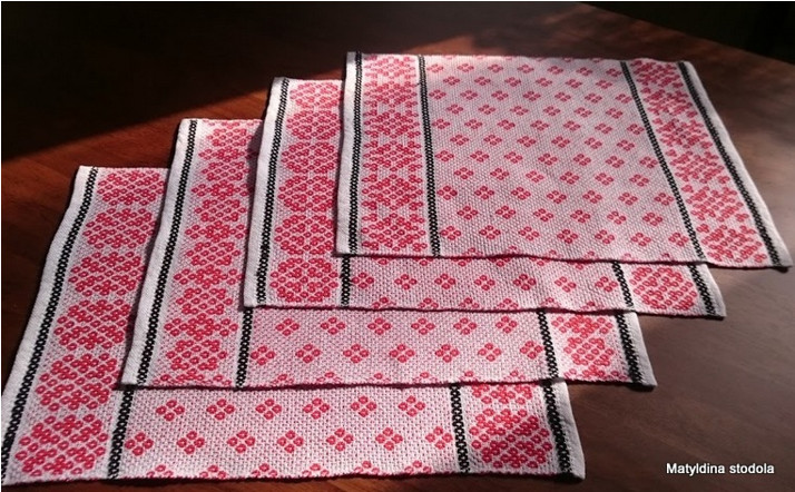 Ručně tkané čtyřdílné sváteční prostírání z bavlny. Lze používat oboustranně. Utkáno z materiálu tuzemského výrobce.