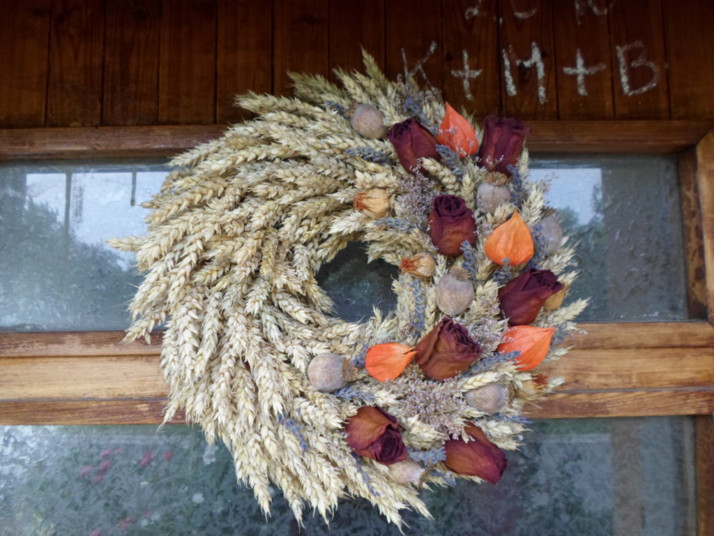 Nabízím věnec na dveře z pšenice, růží a levandule. Cena 350,-
