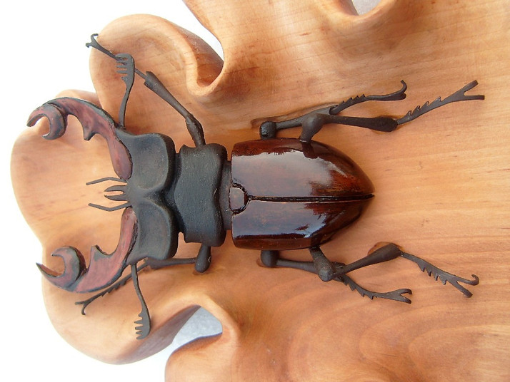 Roháč obecný z lipového dřeva, mísa z hruškového.