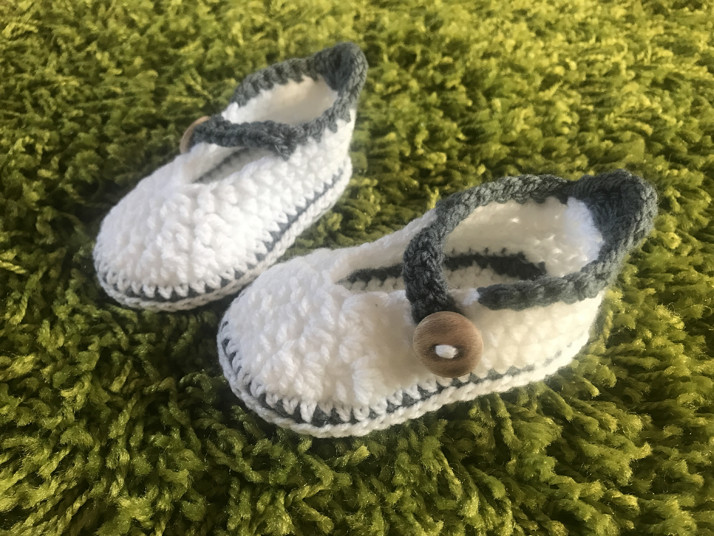 Nádherné háčkované botičky s dřevěným knoflíčkem.