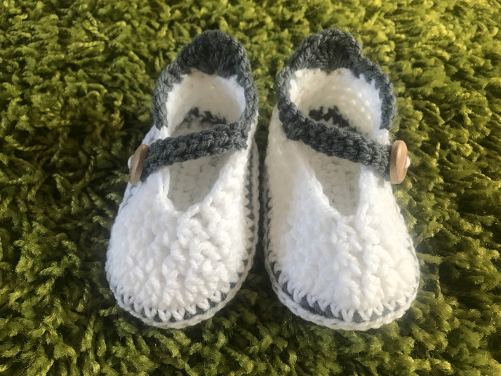 Nádherné háčkované botičky s dřevěným knoflíčkem.