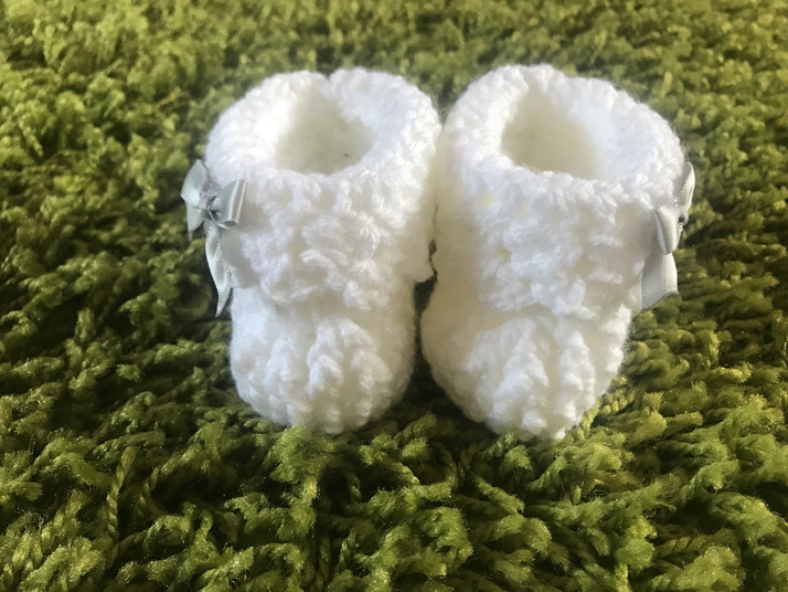 Krásné háčkované botičky pro novorozence a miminka do 4 měsíců. Bílá barva s mašličkou.