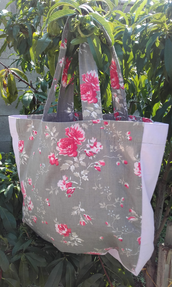 Nákupní taška ušita v duchu Zero Waste. Tedy ne z nových ale z použitých materiálů jako jsou závěsy, záclony, povlečení apod. Taška je z dvojitého materiálu, s velkým spodním dnem, má pevné uši a je lehce skladná. Dá se schovat do kabelky, unese poměrně velký a objemný nákup. Rozměry 38x36 cm.