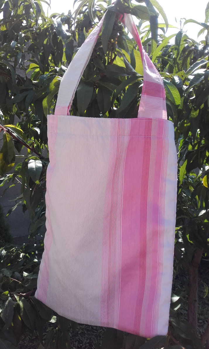 Nákupní taška ušita v duchu Zero Waste. Tedy ne z nových ale z použitých materiálů jako jsou závěsy, záclony, povlečení apod. Taška je z dvojitého materiálu, má pevné uši a je lehce skladná.