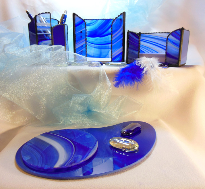 Sada kancelářských stojánků s prostíráním. Tiffany vitráž.