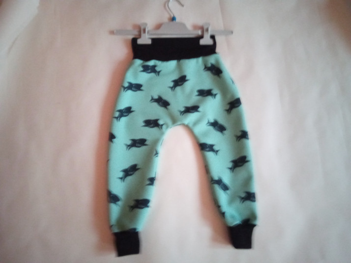 Softshellové kalhoty mají v pase náplet, který obepne pas dítěte. V pase je guma. U nohaviček je též náplet, který obepne kotníky dítěte a drží nohavičky nad zemí.
