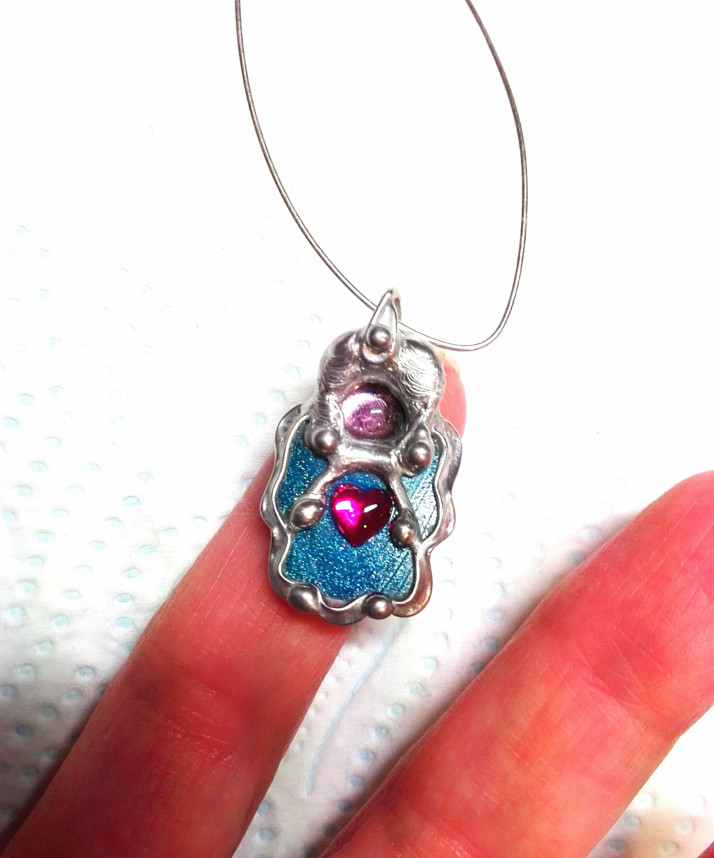 Autorská Andělka - amulet, která vznikla spojením dvou technik... Tiffany vitráže a cínovaného šperku, jako ochránce na krk, do auta nebo peněženky