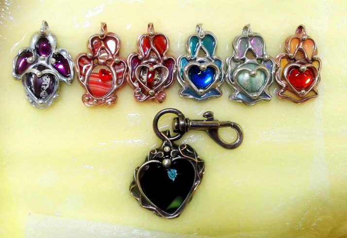 Autorský Andílek, Andělka, amulet - tento přívěsek vznikl spojením dvou technik, Tiffany vitráže a cínovaného šperku. Vhodný na krk, do kabelky nebo peněženky, je opravdu malinký anebo jako ochránce do auta