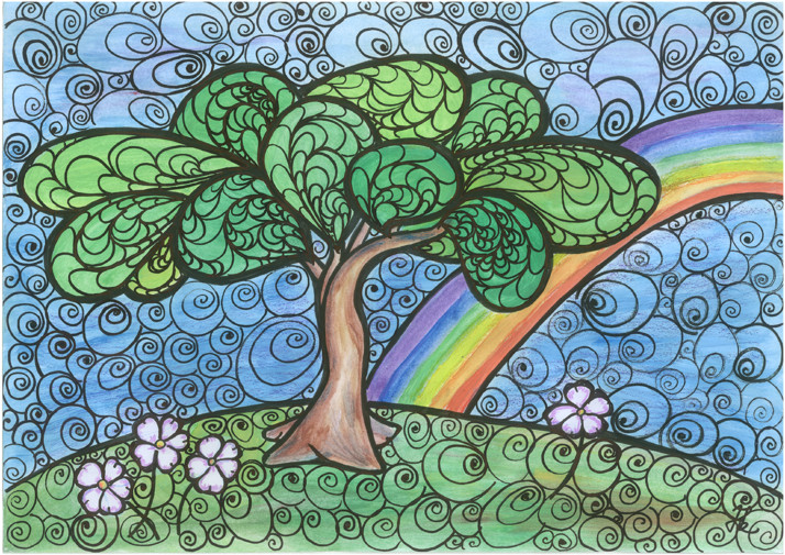 papír, akvarel, tempera, fixy