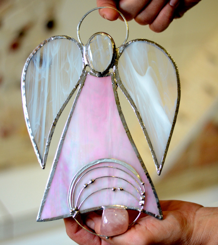 Růžový andělíček s růženínem vyráběný tiffany technikou :)